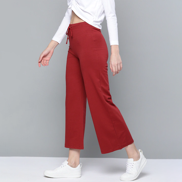 Women Red Solid High-Rise Cropped Wide Leg Track Pants Description Reviews (0) ₹1,275 ₹1,275 ₹1,275 Add to cart Buy Now